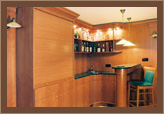 ![]() | ![]() | Krása dřeva vynikne v kombinaci s jinými materiály. Kovové a skleněné plochy odrážejí světlo a dokreslují čisté horizontální a vertikálním linie. |